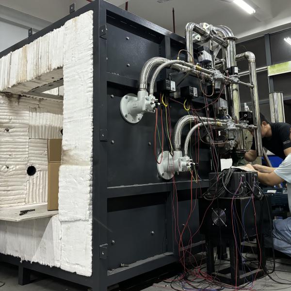 3.Burner:Two sets of high-pressure burners with a power of 60-80kw are used, which have air-fuel ratio control and closed-loop control formed by temperature feedback inside the furnace. The gas valve and air valve can be automatically adjusted to achieve the best combustion effect. To ensure safety, the burner selection and components are all from well-known brands.